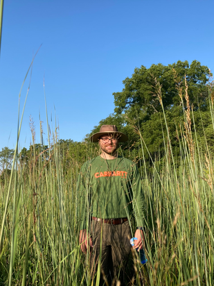 During the 2023-2024 academic year, Hayden served as the Andrew W. Mellon Foundation Arts Research Integration Fellow at the Spencer Museum of Art. The majority of his fellowship year consisted of working with his supervisor, Dr. Joey Orr, and New York-based artist, Janine Antoni, on the completion and public programming for Antoni's environmentally embedded artwork, here-ing, located in remnant tallgrass prairie on KU Field Station lands. The artwork, which is made entirely by human footsteps and took shape over several years, had a public event in October 2023 to celebrate its completion. In Spring 2024, Hayden spearheaded programming efforts at here-ing, which included giving a series of guided walks for a KU environmental studies course in April and developing a public program with Kansas poet and nature writer, Lori Brack. This public program occurred over two days in June 2024 and included Hayden leading the walk while providing the historical and environmental background of the site and the artwork, followed by a poetry reflection led by Brack, who then compiled individual thoughts into group poems. Hayden spent many long hours at here-ing, not only in the sweltering Kansas heat and humidity, but also over the fall, winter, and spring, which allowed him to develop a relationship with that place and its environment across different seasons. He is grateful for the time he had working on here-ing to not only build those relationships to place but also the relationships he developed with the project team members.